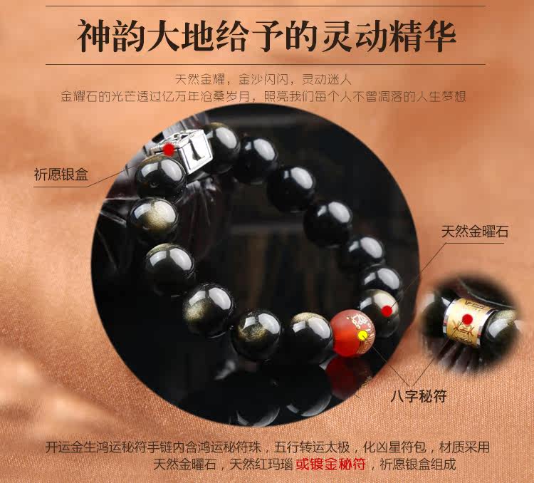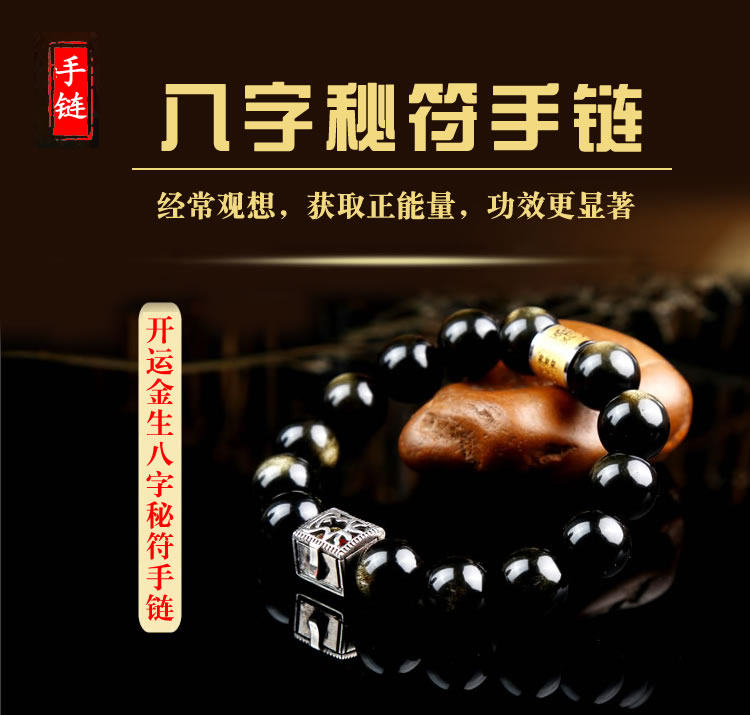 开运金生八字秘符手链内含金色秘符珠,五行转运太极,化凶星符包,材质采用天然金曜石,纯银组成,是开运金生大师独家设计的旺运手链。